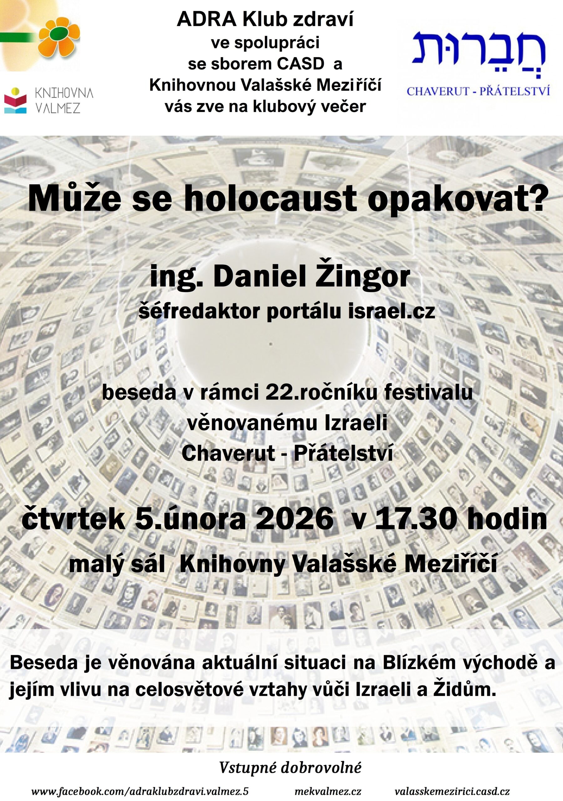 Dobrovolné vstupné bude, jako na všech našich besedách, předáno DC Adra Valašské Meziříčí.
