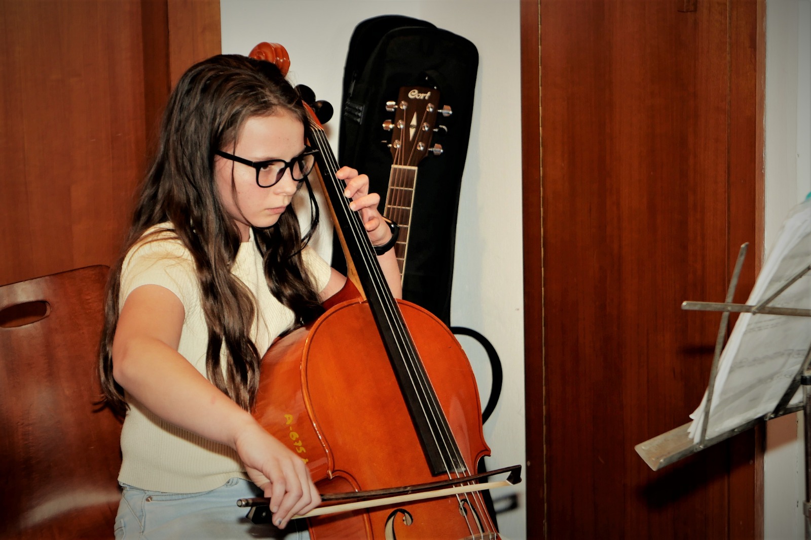 Stázinka Kimlerová se svým violoncellem nám zahrála skladbičku, kterou se učí na hodinách v ZUŠ. Jde jí to moc pěkně a muzikantské vlohy jsou znatelné.