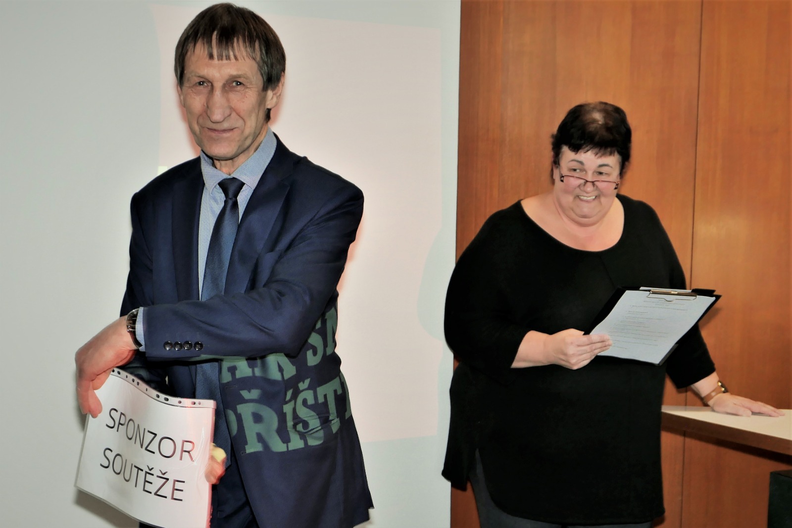 Poslední příspěvek našeho odpoledne si připravili manželé Mročkovi, kteří ve stylu soutěže „Na lovu“ vyzkoušeli biblické znalosti našeho oslavence Petra Cháry. Lovcem nebyl nikdo menší než vedoucí sboru Pavel Pimek. Soutěžícího Petra dohnal s lehkostí, ale i tak získal Petr hodnotné ceny.